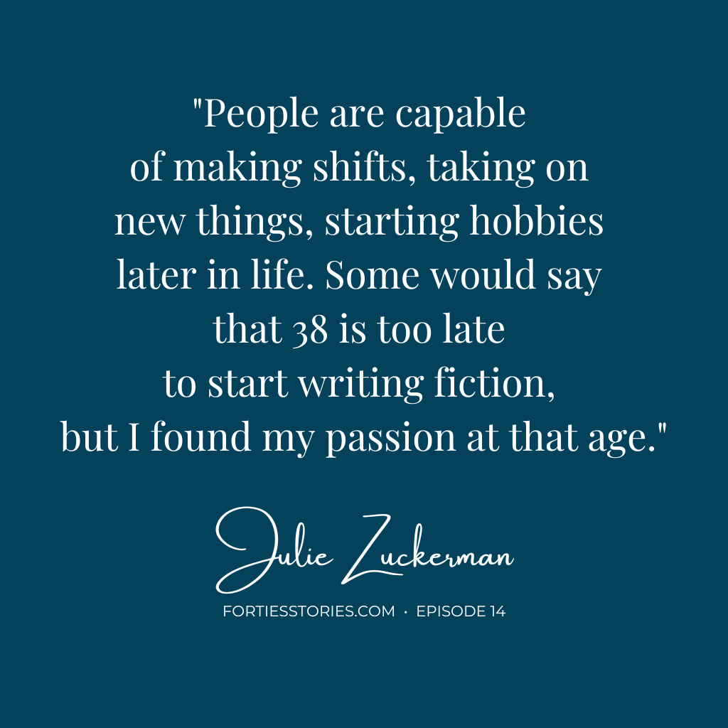 This week, Julie Zuckerman talks about the goal she made shortly after turning 40. We also talk about a major life decision she made after graduating college, a typical day in her life, and how she deals with rejection.