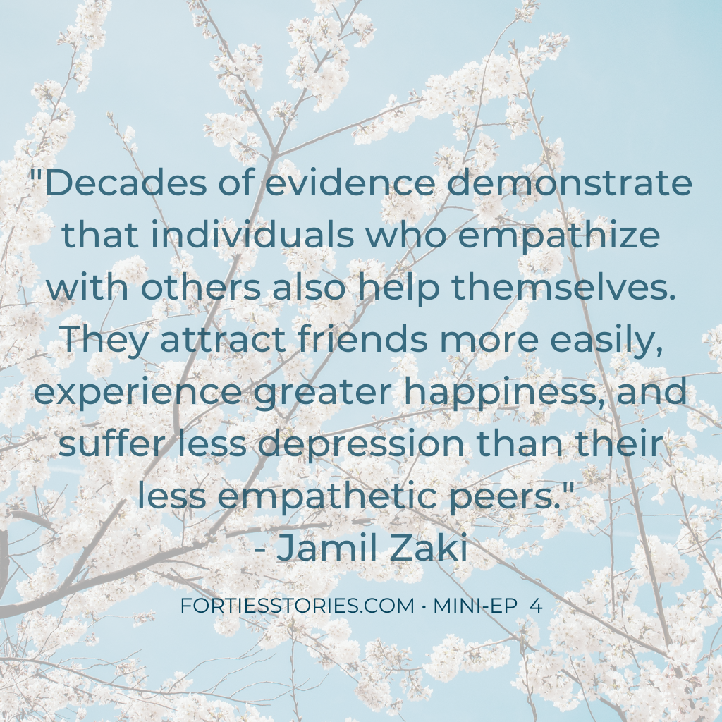 It’s important to note that scientists have discovered that we are able to grow new neurons in our brains throughout our lives. Our personality is not hardwired and our empathy levels are NOT fixed. By even convincing others of this ability, we are able to convince ourselves. Zaki cites Carol Dweck’s work on mindset. I mentioned her in last week’s episode. When we believe our biology is not fixed we are more easily able to change it.